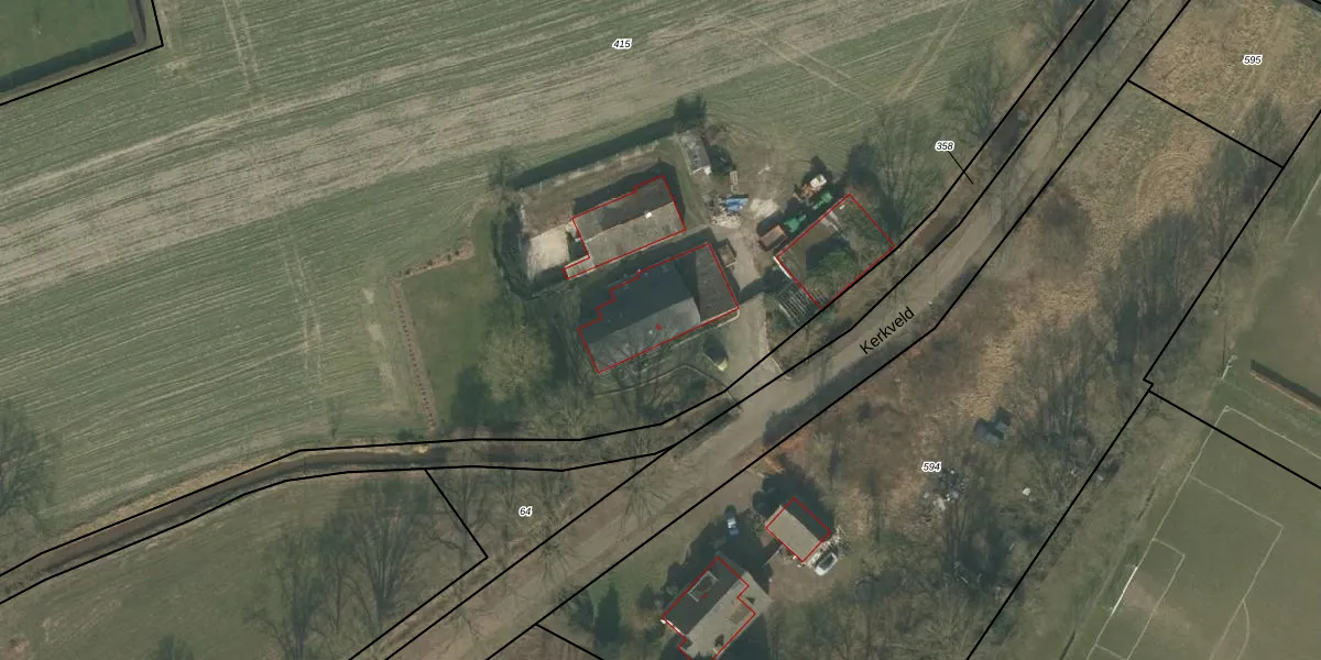 Kerkveld 6 is gelegen op kadastraal perceel OLO00K415. Deze kadastrale aanduiding is uniek en wordt gebruikt door het Kadaster om eigendomsrechten en andere zakelijke rechten vast te leggen. Het perceel maakt onderdeel uit van de kadastrale gemeente Oploo.