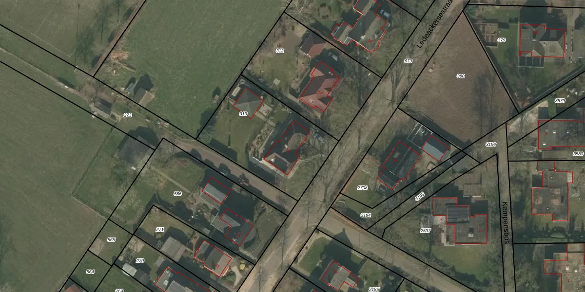 Ledeackersestraat 15 is gelegen op kadastraal perceel OLO00K313. Deze kadastrale aanduiding is uniek en wordt gebruikt door het Kadaster om eigendomsrechten en andere zakelijke rechten vast te leggen. Het perceel maakt onderdeel uit van de kadastrale gemeente Oploo.