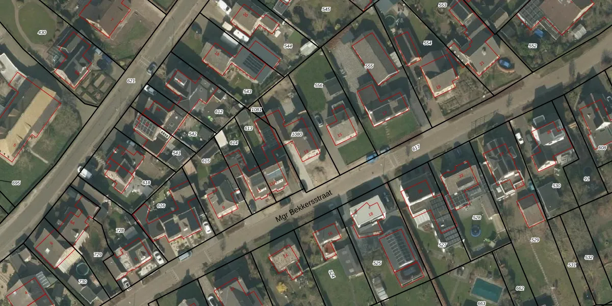 Mgr Bekkersstraat 13 is gelegen op kadastraal perceel OLO00I1080. Deze kadastrale aanduiding is uniek en wordt gebruikt door het Kadaster om eigendomsrechten en andere zakelijke rechten vast te leggen. Het perceel maakt onderdeel uit van de kadastrale gemeente Oploo.