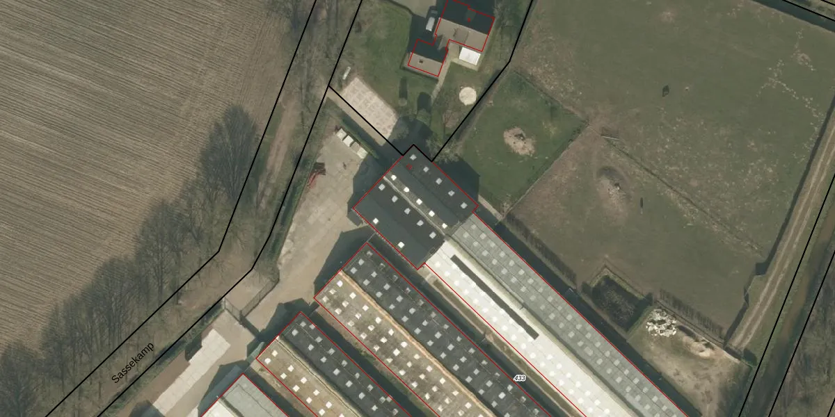 Het perceel waarop Sassekamp 11 staat heeft een oppervlakte van 2,1 ha. Dit is een zeer groot perceel. De perceeloppervlakte wordt geregistreerd door het Kadaster. Gedetailleerde informatie over de maten van dit perceel kunt u vinden in het rapport Kadastrale kaart met maatvoering van Sassekamp 11.