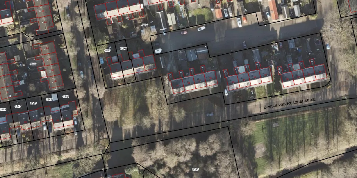 Beetke van Rasquertstraat 41 is gelegen op kadastraal perceel LEE01D5006. Deze kadastrale aanduiding is uniek en wordt gebruikt door het Kadaster om eigendomsrechten en andere zakelijke rechten vast te leggen. Het perceel maakt onderdeel uit van de kadastrale gemeente Leek.