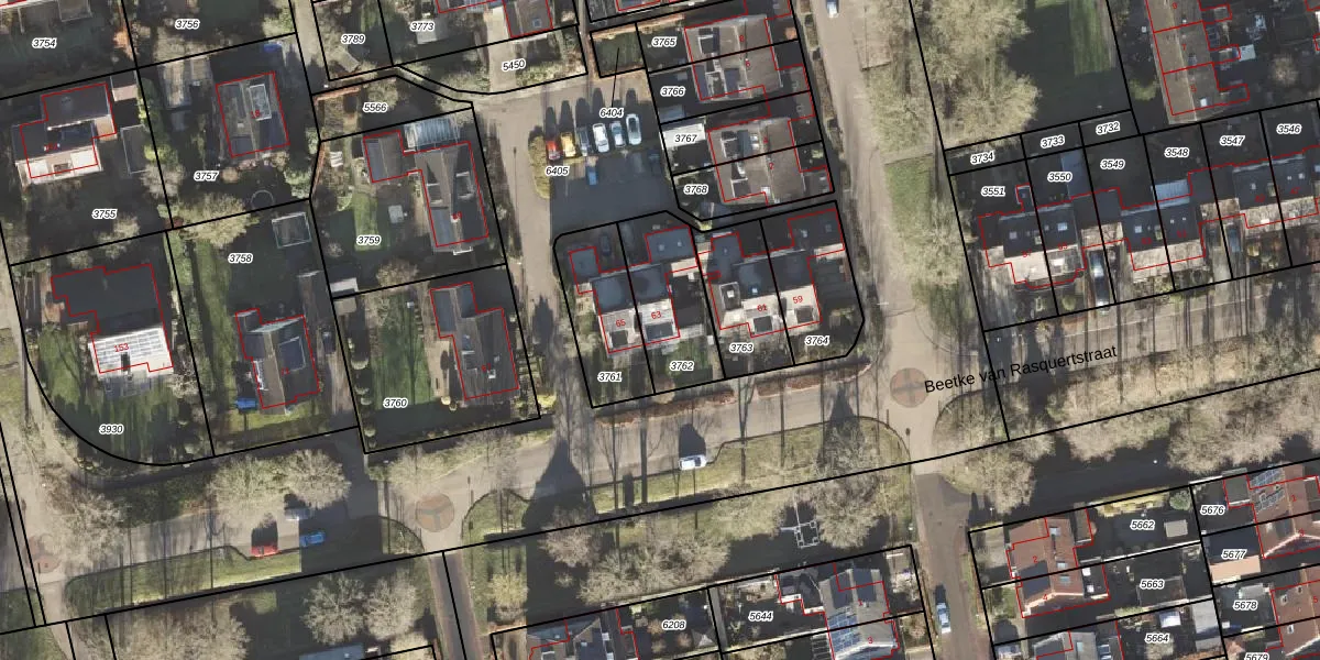 Gebruik de zoekbalk of klik op een perceel voor informatie over de adressen binnen dit perceel.