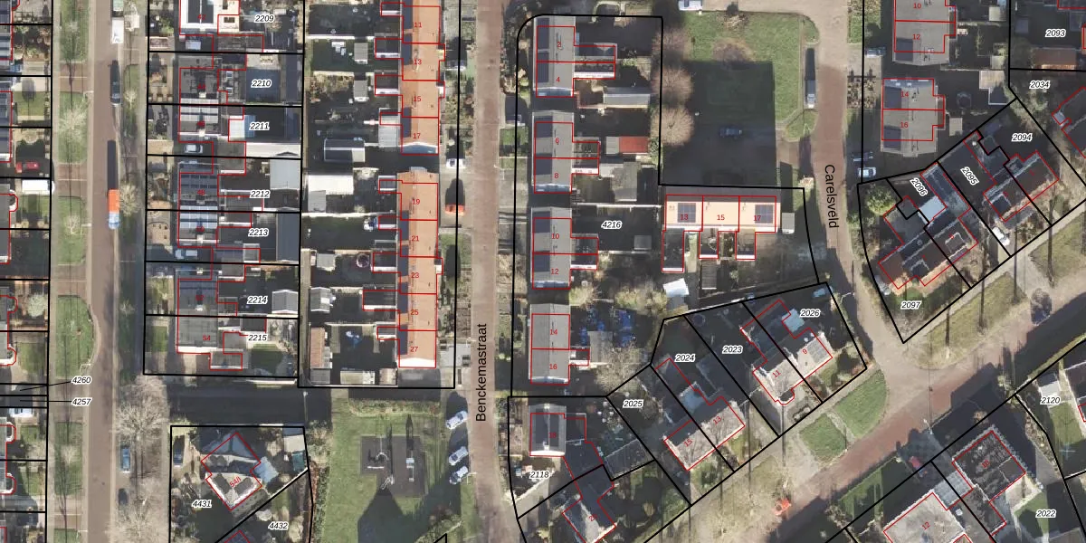 Het perceel waarop Benckemastraat 12 staat heeft een oppervlakte van 2415 m². Dit is een zeer groot perceel. De perceeloppervlakte wordt geregistreerd door het Kadaster. Gedetailleerde informatie over de maten van dit perceel kunt u vinden in het rapport Kadastrale kaart met maatvoering van Benckemastraat 12.