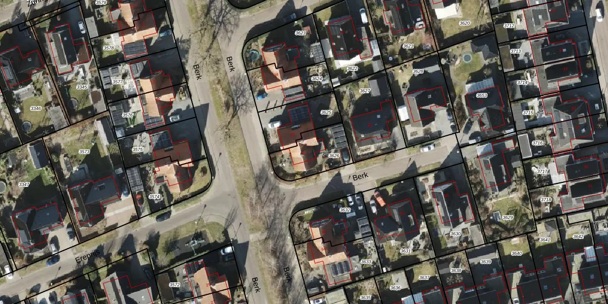 Het perceel waarop Berk 48 staat heeft een oppervlakte van 323 m². Dit is een groot perceel. De perceeloppervlakte wordt geregistreerd door het Kadaster. Gedetailleerde informatie over de maten van dit perceel kunt u vinden in het rapport Kadastrale kaart met maatvoering van Berk 48.