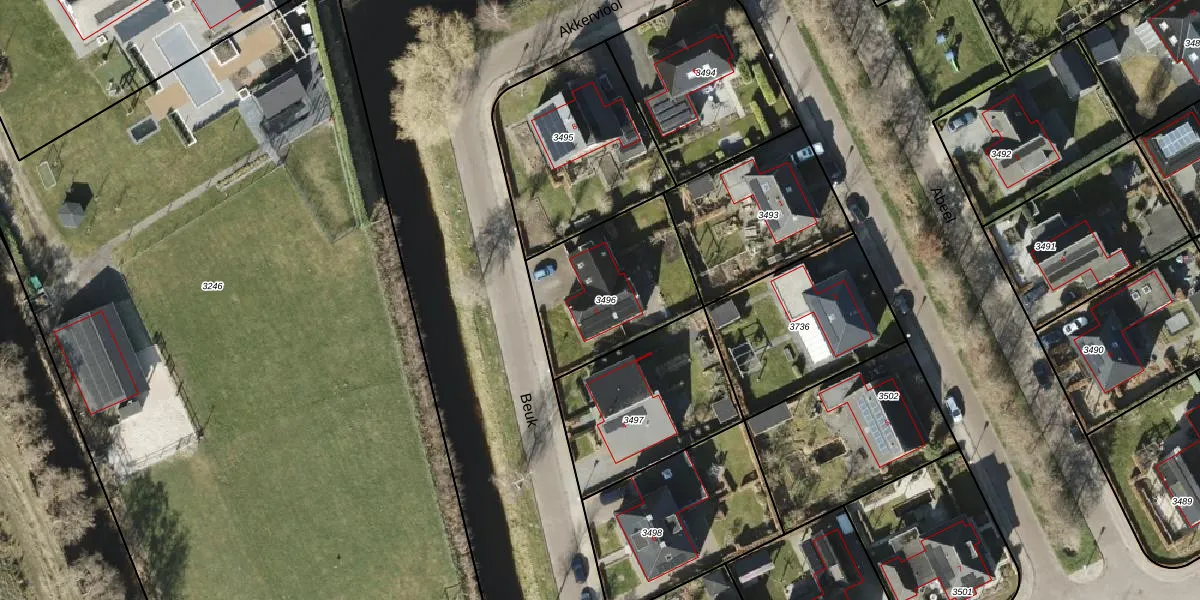 Beuk 2 is gelegen op kadastraal perceel LEE01E3496. Deze kadastrale aanduiding is uniek en wordt gebruikt door het Kadaster om eigendomsrechten en andere zakelijke rechten vast te leggen. Het perceel maakt onderdeel uit van de kadastrale gemeente Leek.