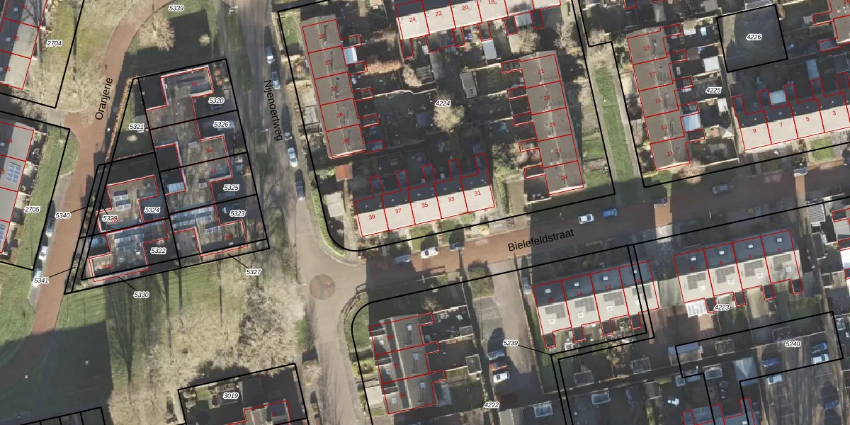 Het perceel waarop Bielefeldstraat 35 staat heeft een oppervlakte van 4020 m². Dit is een zeer groot perceel. De perceeloppervlakte wordt geregistreerd door het Kadaster. Gedetailleerde informatie over de maten van dit perceel kunt u vinden in het rapport Kadastrale kaart met maatvoering van Bielefeldstraat 35.