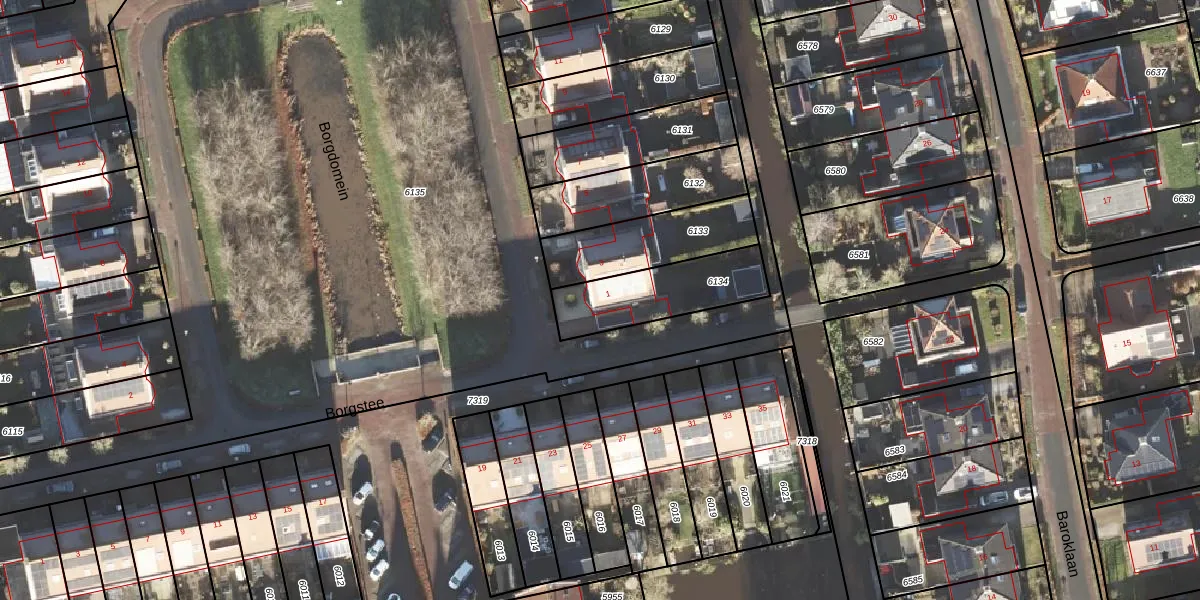 Het perceel waarop Borgdomein 1 staat heeft een oppervlakte van 310 m². Dit is een groot perceel. De perceeloppervlakte wordt geregistreerd door het Kadaster. Gedetailleerde informatie over de maten van dit perceel kunt u vinden in het rapport Kadastrale kaart met maatvoering van Borgdomein 1.