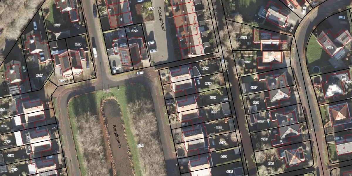 Het perceel waarop Borgdomein 13 staat heeft een oppervlakte van 305 m². Dit is een groot perceel. De perceeloppervlakte wordt geregistreerd door het Kadaster. Gedetailleerde informatie over de maten van dit perceel kunt u vinden in het rapport Kadastrale kaart met maatvoering van Borgdomein 13.