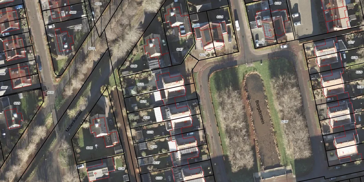 Borgdomein 14 is gelegen op kadastraal perceel LEE01H6121. Deze kadastrale aanduiding is uniek en wordt gebruikt door het Kadaster om eigendomsrechten en andere zakelijke rechten vast te leggen. Het perceel maakt onderdeel uit van de kadastrale gemeente Leek.