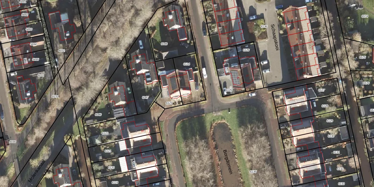 Borgdomein 20 is gelegen op kadastraal perceel LEE01H6124. Deze kadastrale aanduiding is uniek en wordt gebruikt door het Kadaster om eigendomsrechten en andere zakelijke rechten vast te leggen. Het perceel maakt onderdeel uit van de kadastrale gemeente Leek.
