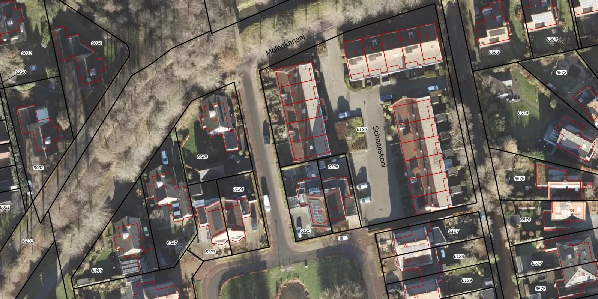 Het adres ligt op het perceel LEE01-H-6136, dat zich in de kadastrale gemeente Leek bevindt. Het perceel is 3408 m² groot. Dat is kleiner dan de gemiddelde perceeloppervlakte in Leek, dat op 5186,73 m² ligt. Het grootste perceel in de kadastrale gemeente is 72,3 ha. Het kleinste perceel heeft een oppervlakte van 0 m². Op het perceel liggen in totaal 16 adressen. In de Basisregistratie Kadaster (BRK) werden de grenzen van het perceel geregistreerd op 13-07-2005.