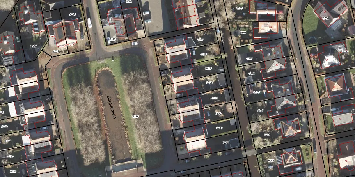 Het perceel waarop Borgdomein 9 staat heeft een oppervlakte van 305 m². Dit is een groot perceel. De perceeloppervlakte wordt geregistreerd door het Kadaster. Gedetailleerde informatie over de maten van dit perceel kunt u vinden in het rapport Kadastrale kaart met maatvoering van Borgdomein 9.
