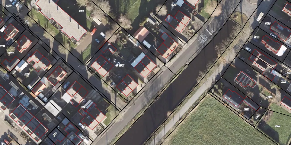 Het adres ligt op het perceel LEE01-D-3757, dat zich in de kadastrale gemeente Leek bevindt. Het perceel is kleiner dan gemiddeld in Leek. Het perceel is 1450 m² groot, terwijl het gemiddelde ligt op 5186,73 m². De grootste perceeloppervlakte in de kadastrale gemeente is 72,3 ha. De kleinste oppervlakte bedraagt 0 m². Op het perceel liggen in totaal 6 adressen. De huidige grenzen van het perceel zijn digitaal in de Basisregistratie Kadaster (BRK) geregistreerd op 24-03-2003.