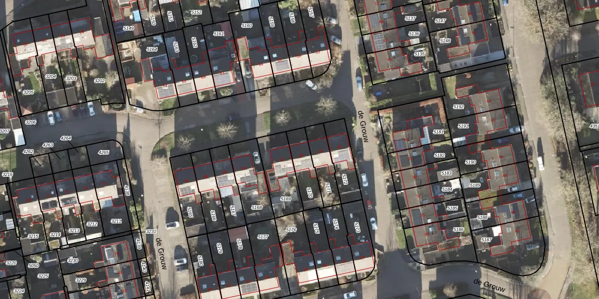 Gebruik de zoekbalk of klik op een perceel voor informatie over de adressen binnen dit perceel.