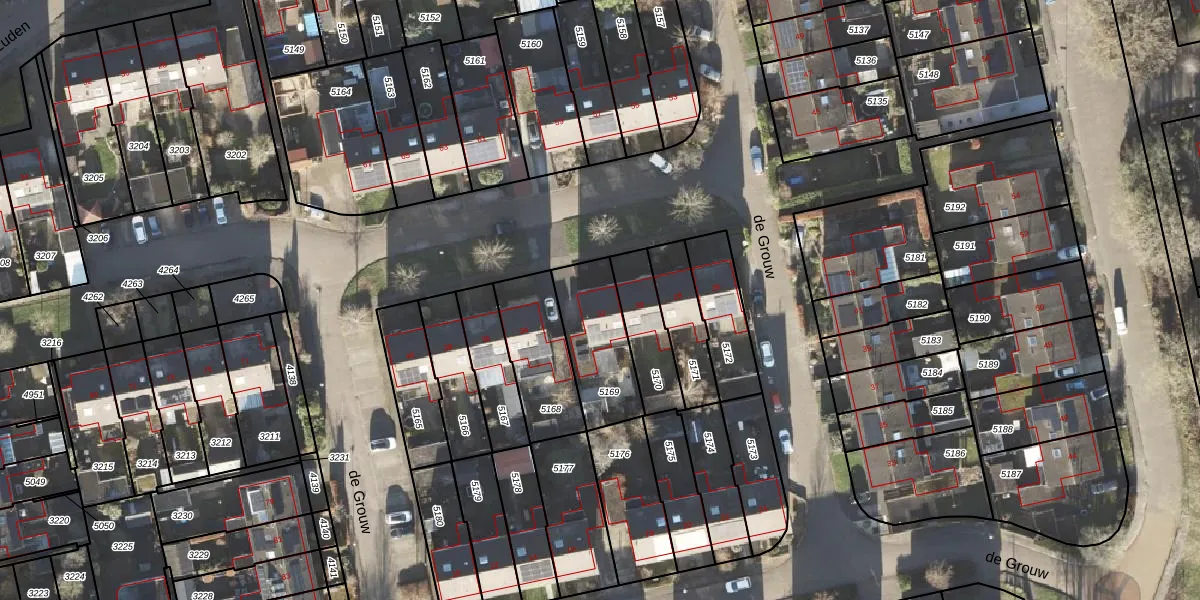 de Grouw 32 is gelegen op kadastraal perceel LEE01D5169. Deze kadastrale aanduiding is uniek en wordt gebruikt door het Kadaster om eigendomsrechten en andere zakelijke rechten vast te leggen. Het perceel maakt onderdeel uit van de kadastrale gemeente Leek.