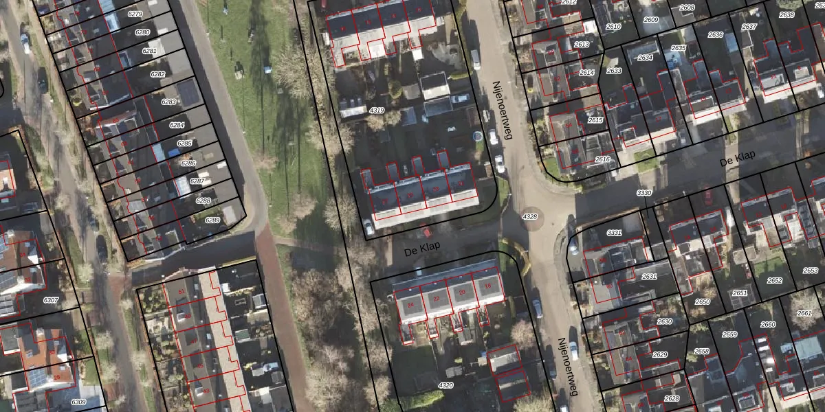 De Klap 25 is gelegen op kadastraal perceel LEE01D4319. Deze kadastrale aanduiding is uniek en wordt gebruikt door het Kadaster om eigendomsrechten en andere zakelijke rechten vast te leggen. Het perceel maakt onderdeel uit van de kadastrale gemeente Leek.