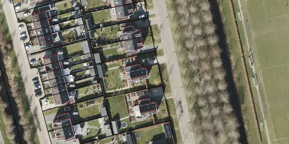 de Knip 23 is gelegen op kadastraal perceel LEE01E4186. Deze kadastrale aanduiding is uniek en wordt gebruikt door het Kadaster om eigendomsrechten en andere zakelijke rechten vast te leggen. Het perceel maakt onderdeel uit van de kadastrale gemeente Leek.