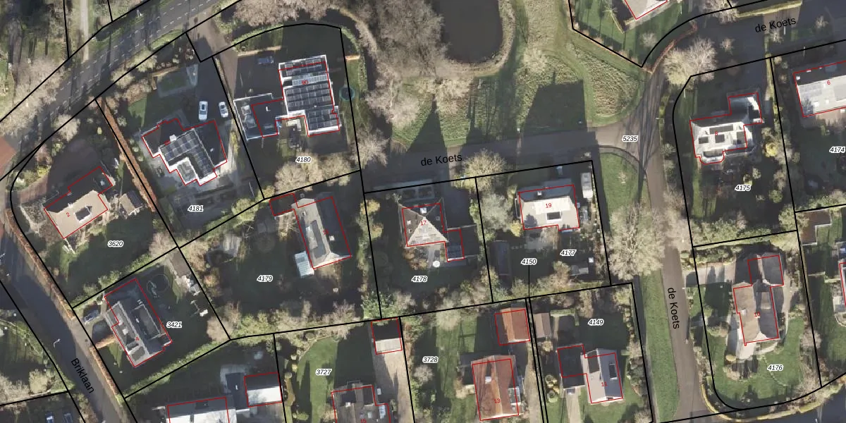 de Koets 17 is gelegen op kadastraal perceel LEE01D4178. Deze kadastrale aanduiding is uniek en wordt gebruikt door het Kadaster om eigendomsrechten en andere zakelijke rechten vast te leggen. Het perceel maakt onderdeel uit van de kadastrale gemeente Leek.