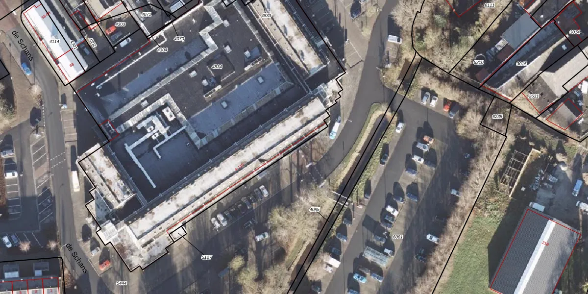 Het perceel waarop de Schans 18 staat heeft een oppervlakte van 5256 m². Dit is een zeer groot perceel. De perceeloppervlakte wordt geregistreerd door het Kadaster. Gedetailleerde informatie over de maten van dit perceel kunt u vinden in het rapport Kadastrale kaart met maatvoering van de Schans 18.