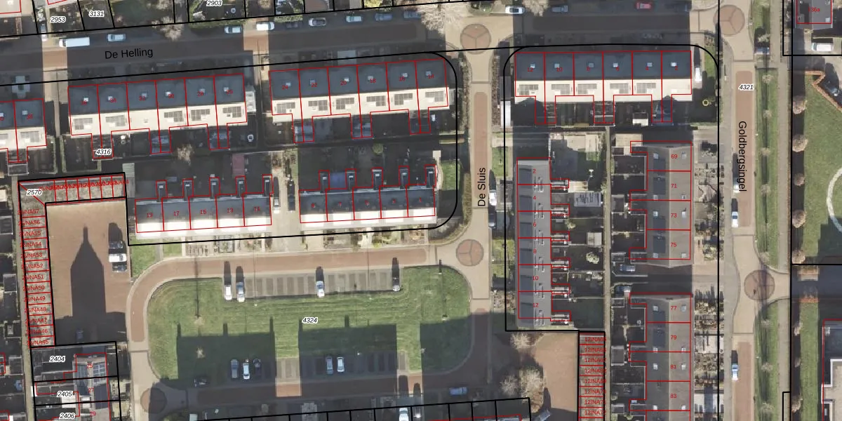 De Sluis 1 is gelegen op kadastraal perceel LEE01D4316. Deze kadastrale aanduiding is uniek en wordt gebruikt door het Kadaster om eigendomsrechten en andere zakelijke rechten vast te leggen. Het perceel maakt onderdeel uit van de kadastrale gemeente Leek.