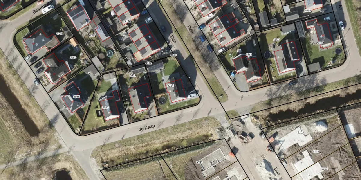 Het perceel waarop Den 43 staat heeft een oppervlakte van 627 m². Dit is een groot perceel. De perceeloppervlakte wordt geregistreerd door het Kadaster. Gedetailleerde informatie over de maten van dit perceel kunt u vinden in het rapport Kadastrale kaart met maatvoering van Den 43.