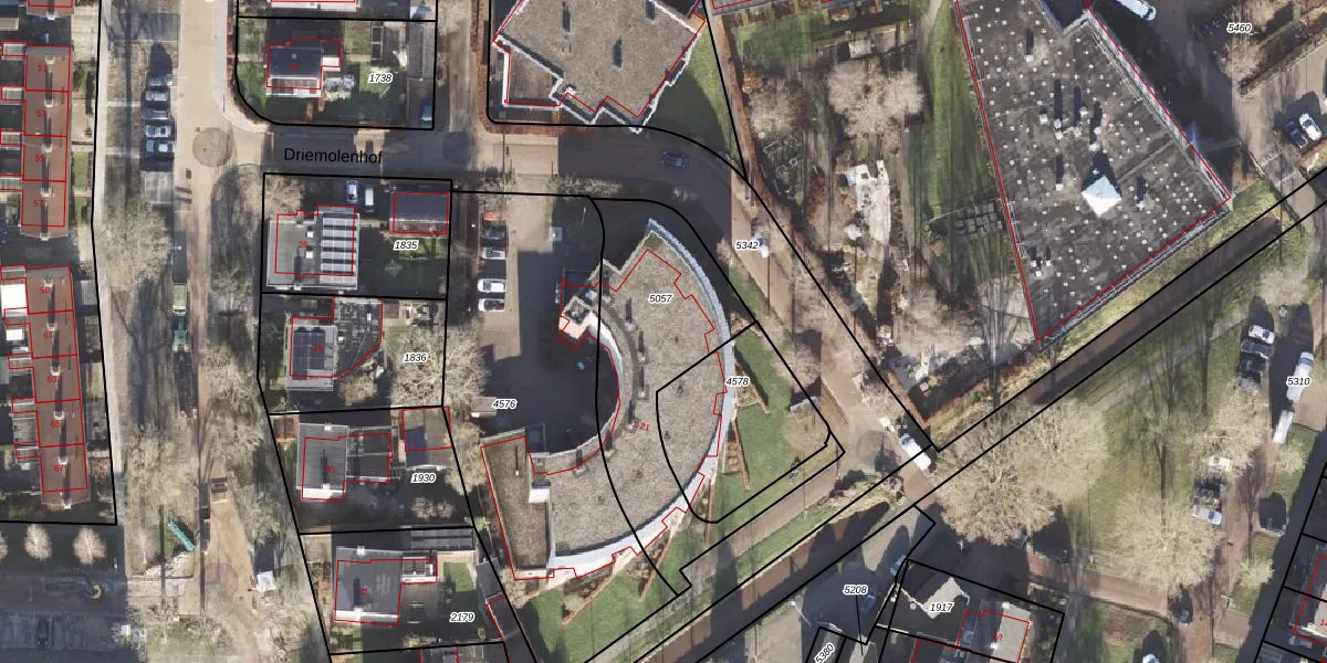 Het perceel waarop Driemolenhof 9 staat heeft een oppervlakte van 820 m². Dit is een groot perceel. De perceeloppervlakte wordt geregistreerd door het Kadaster. Gedetailleerde informatie over de maten van dit perceel kunt u vinden in het rapport Kadastrale kaart met maatvoering van Driemolenhof 9.