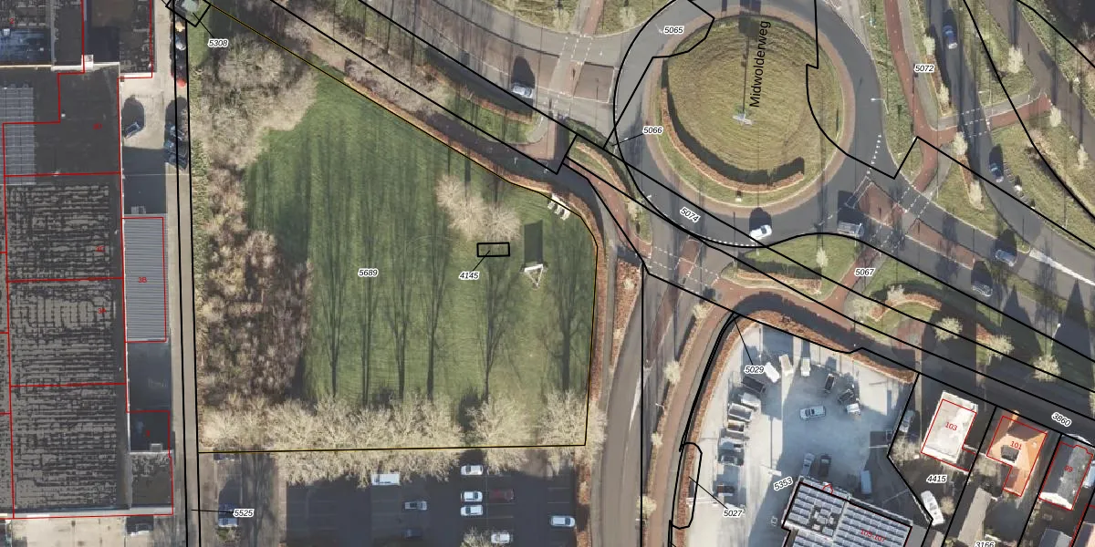 Het perceel waarop het adres ligt is LEE01-D-5689. De afkorting 'LEE01' staat voor kadastrale gemeente Leek. Het perceel is 4523 m² groot. Dat is kleiner dan de gemiddelde perceeloppervlakte in Leek, dat op 5186,73 m² ligt. De grootste perceeloppervlakte in de kadastrale gemeente is 72,3 ha. De kleinste oppervlakte bedraagt 0 m². Er zijn 33 adressen aanwezig op het perceel. De laatste wijziging in het de Basisregistratie Kadaster (BRK) was op 09-12-2024.
