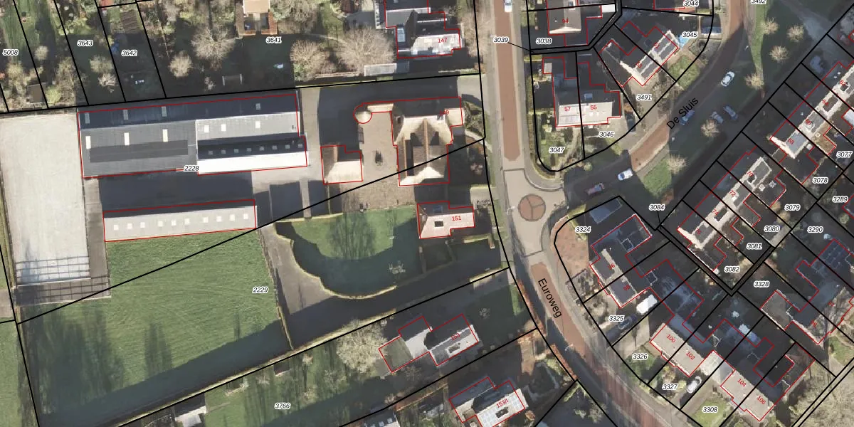 Euroweg 151 is gelegen op kadastraal perceel LEE01D2229. Deze kadastrale aanduiding is uniek en wordt gebruikt door het Kadaster om eigendomsrechten en andere zakelijke rechten vast te leggen. Het perceel maakt onderdeel uit van de kadastrale gemeente Leek.