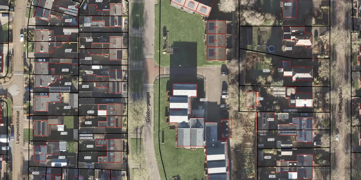Het perceel waarop Goldbergsingel 36-I staat heeft een oppervlakte van 5890 m². Dit is een zeer groot perceel. De perceeloppervlakte wordt geregistreerd door het Kadaster. Gedetailleerde informatie over de maten van dit perceel kunt u vinden in het rapport Kadastrale kaart met maatvoering van Goldbergsingel 36-I.