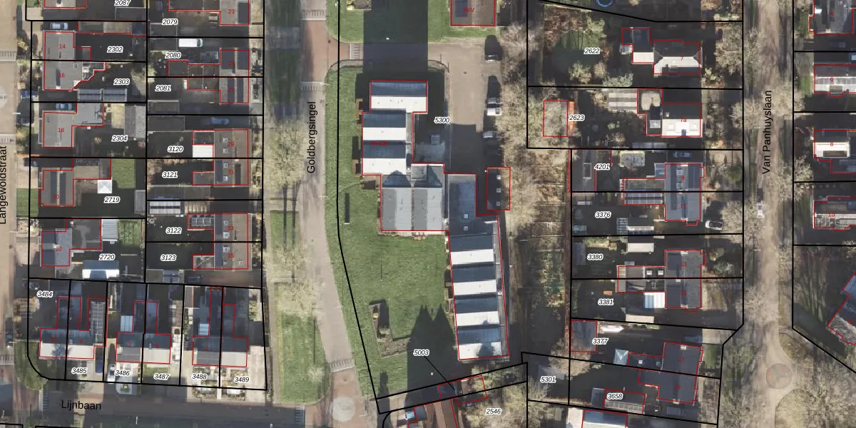 Het perceel waarop Goldbergsingel 44-I staat heeft een oppervlakte van 5890 m². Dit is een zeer groot perceel. De perceeloppervlakte wordt geregistreerd door het Kadaster. Gedetailleerde informatie over de maten van dit perceel kunt u vinden in het rapport Kadastrale kaart met maatvoering van Goldbergsingel 44-I.