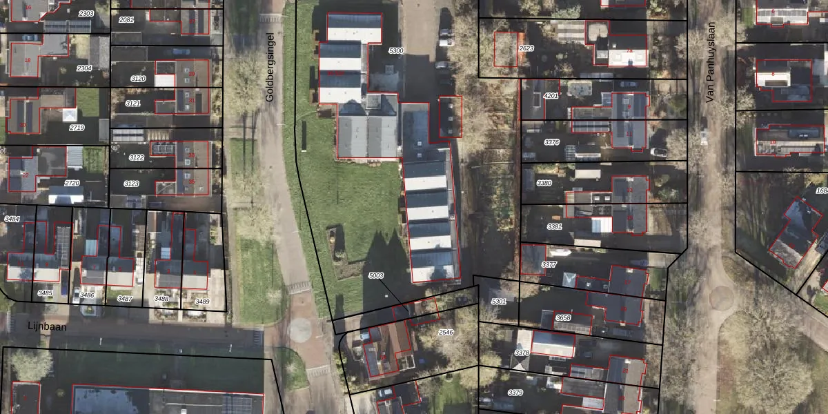 Het perceel waarop Goldbergsingel 48 staat heeft een oppervlakte van 5890 m². Dit is een zeer groot perceel. De perceeloppervlakte wordt geregistreerd door het Kadaster. Gedetailleerde informatie over de maten van dit perceel kunt u vinden in het rapport Kadastrale kaart met maatvoering van Goldbergsingel 48.