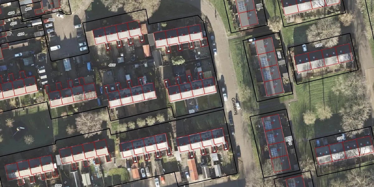 Het perceel waarop Grietenij 28 staat heeft een oppervlakte van 5405 m². Dit is een zeer groot perceel. De perceeloppervlakte wordt geregistreerd door het Kadaster. Gedetailleerde informatie over de maten van dit perceel kunt u vinden in het rapport Kadastrale kaart met maatvoering van Grietenij 28.