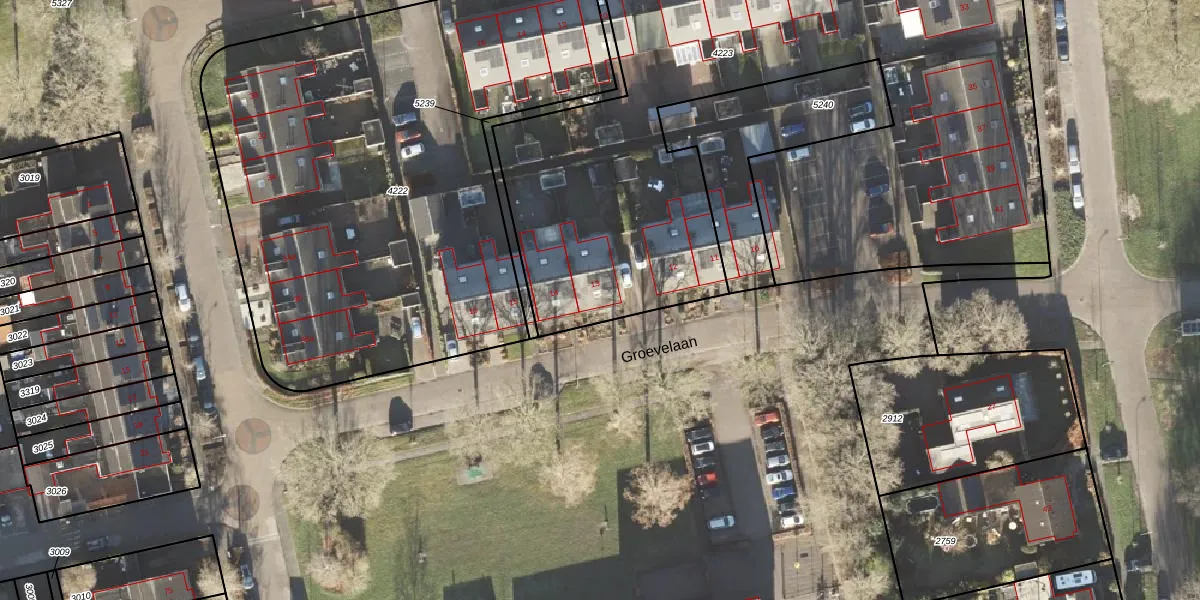Het perceel waarop Groevelaan 13 staat heeft een oppervlakte van 4265 m². Dit is een zeer groot perceel. De perceeloppervlakte wordt geregistreerd door het Kadaster. Gedetailleerde informatie over de maten van dit perceel kunt u vinden in het rapport Kadastrale kaart met maatvoering van Groevelaan 13.