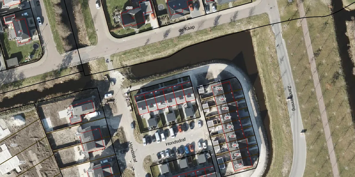 Hondsdraf 10 is gelegen op kadastraal perceel LEE01E4927. Deze kadastrale aanduiding is uniek en wordt gebruikt door het Kadaster om eigendomsrechten en andere zakelijke rechten vast te leggen. Het perceel maakt onderdeel uit van de kadastrale gemeente Leek.