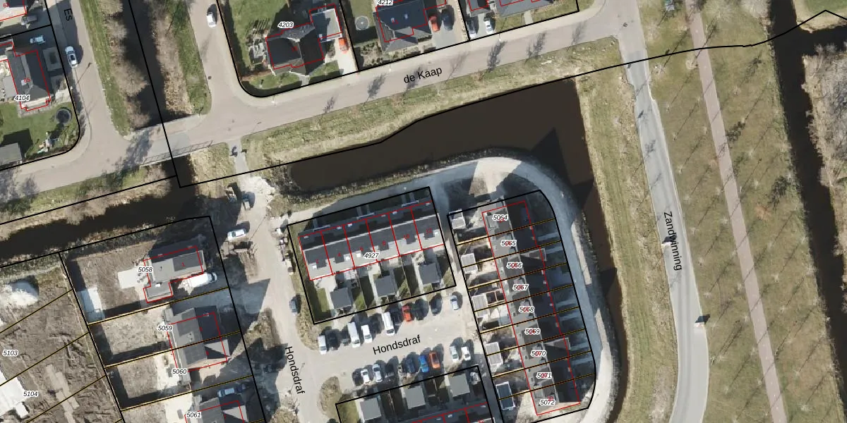 Het perceel waarop Hondsdraf 12 staat heeft een oppervlakte van 839 m². Dit is een groot perceel. De perceeloppervlakte wordt geregistreerd door het Kadaster. Gedetailleerde informatie over de maten van dit perceel kunt u vinden in het rapport Kadastrale kaart met maatvoering van Hondsdraf 12.