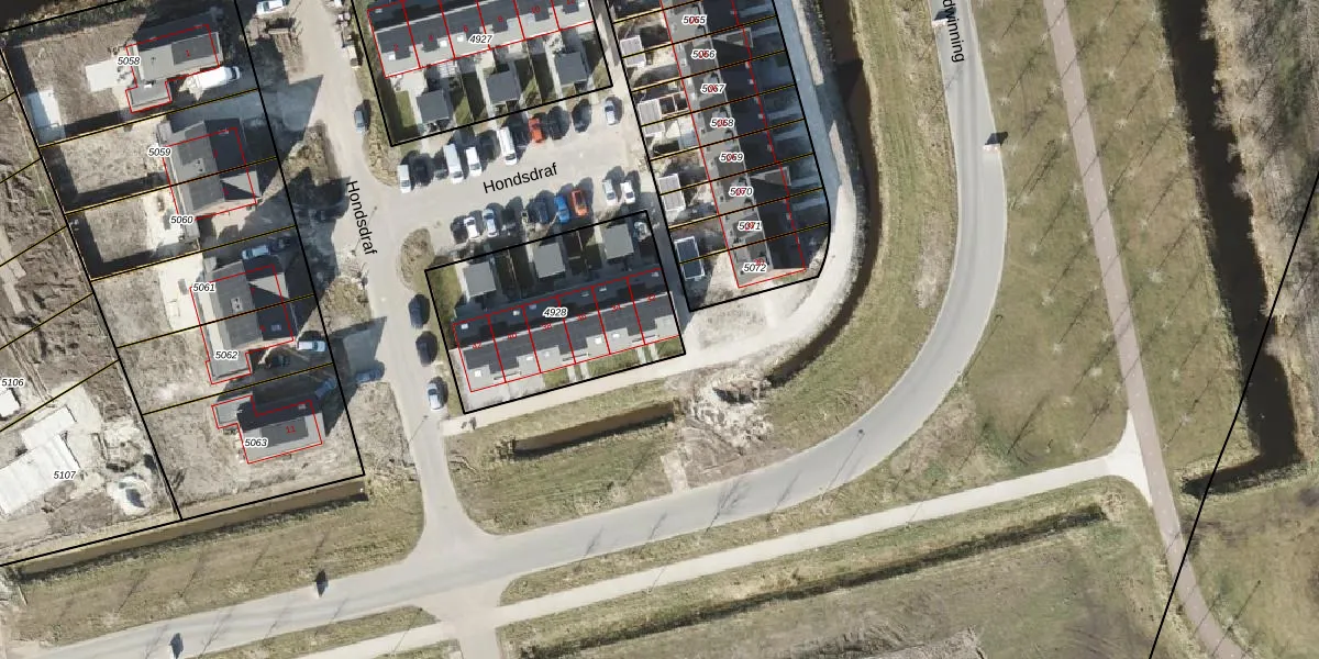 Het perceel waarop Hondsdraf 32 staat heeft een oppervlakte van 780 m². Dit is een groot perceel. De perceeloppervlakte wordt geregistreerd door het Kadaster. Gedetailleerde informatie over de maten van dit perceel kunt u vinden in het rapport Kadastrale kaart met maatvoering van Hondsdraf 32.