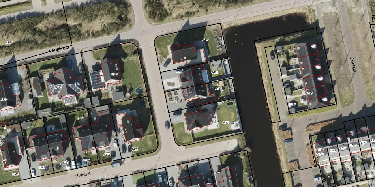 Gebruik de zoekbalk of klik op een perceel voor informatie over de adressen binnen dit perceel.