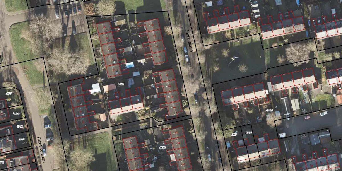 Het perceel waarop Jonkerslaan 68 staat heeft een oppervlakte van 3759 m². Dit is een zeer groot perceel. De perceeloppervlakte wordt geregistreerd door het Kadaster. Gedetailleerde informatie over de maten van dit perceel kunt u vinden in het rapport Kadastrale kaart met maatvoering van Jonkerslaan 68.