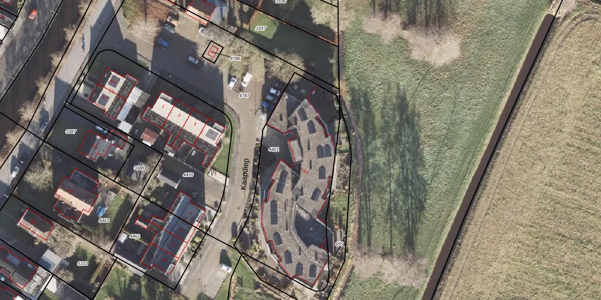 Kaapdiep 10 is gelegen op kadastraal perceel LEE01D4461. Deze kadastrale aanduiding is uniek en wordt gebruikt door het Kadaster om eigendomsrechten en andere zakelijke rechten vast te leggen. Het perceel maakt onderdeel uit van de kadastrale gemeente Leek.
