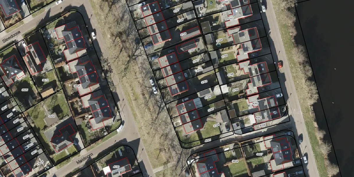 Gebruik de zoekbalk of klik op een perceel voor informatie over de adressen binnen dit perceel.