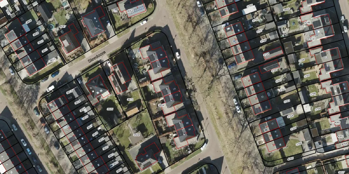 Linde 9 is gelegen op kadastraal perceel LEE01E3854. Deze kadastrale aanduiding is uniek en wordt gebruikt door het Kadaster om eigendomsrechten en andere zakelijke rechten vast te leggen. Het perceel maakt onderdeel uit van de kadastrale gemeente Leek.