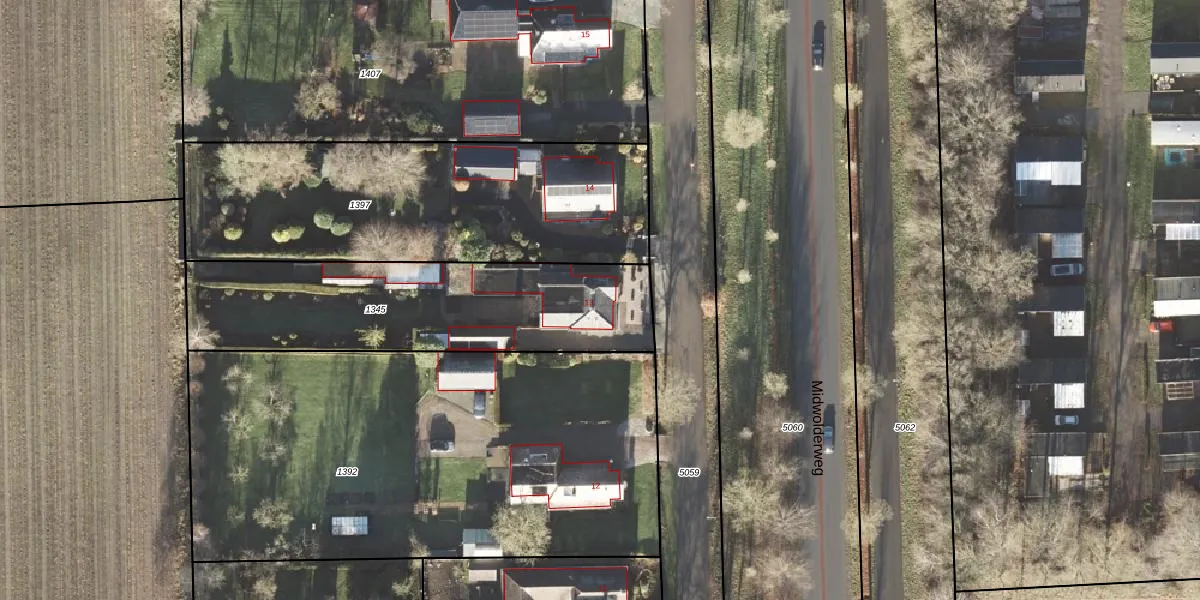 Het perceel waarop Midwolderweg 13 staat heeft een oppervlakte van 1160 m². Dit is een zeer groot perceel. De perceeloppervlakte wordt geregistreerd door het Kadaster. Gedetailleerde informatie over de maten van dit perceel kunt u vinden in het rapport Kadastrale kaart met maatvoering van Midwolderweg 13.