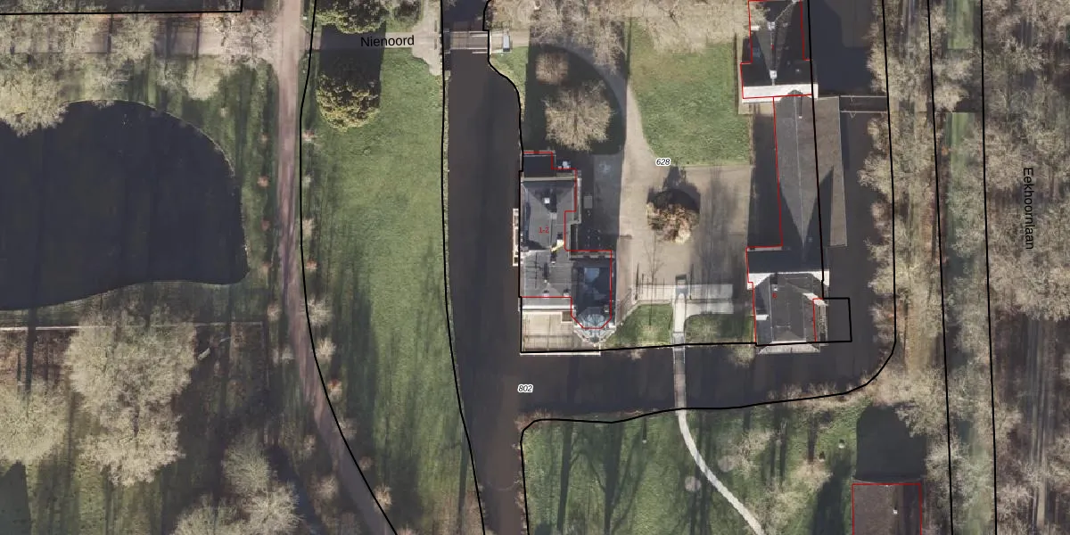 Het perceel waarop Nienoord 2 staat heeft een oppervlakte van 3800 m². Dit is een zeer groot perceel. De perceeloppervlakte wordt geregistreerd door het Kadaster. Gedetailleerde informatie over de maten van dit perceel kunt u vinden in het rapport Kadastrale kaart met maatvoering van Nienoord 2.