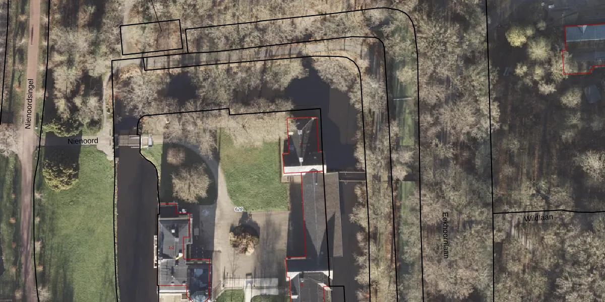 Het perceel waarop Nienoord 7 staat heeft een oppervlakte van 3800 m². Dit is een zeer groot perceel. De perceeloppervlakte wordt geregistreerd door het Kadaster. Gedetailleerde informatie over de maten van dit perceel kunt u vinden in het rapport Kadastrale kaart met maatvoering van Nienoord 7.
