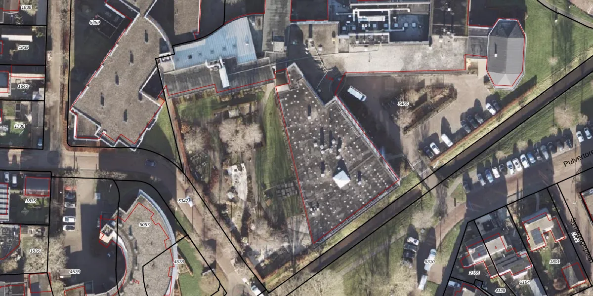 Het perceel waarop Pulvertorenstraat 1-6 staat heeft een oppervlakte van 1,1 ha. Dit is een zeer groot perceel. De perceeloppervlakte wordt geregistreerd door het Kadaster. Gedetailleerde informatie over de maten van dit perceel kunt u vinden in het rapport Kadastrale kaart met maatvoering van Pulvertorenstraat 1-6.