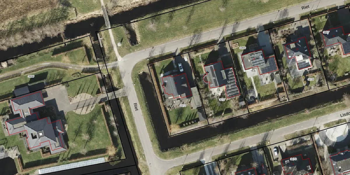 Het perceel waarop Riet 16 staat heeft een oppervlakte van 1025 m². Dit is een zeer groot perceel. De perceeloppervlakte wordt geregistreerd door het Kadaster. Gedetailleerde informatie over de maten van dit perceel kunt u vinden in het rapport Kadastrale kaart met maatvoering van Riet 16.
