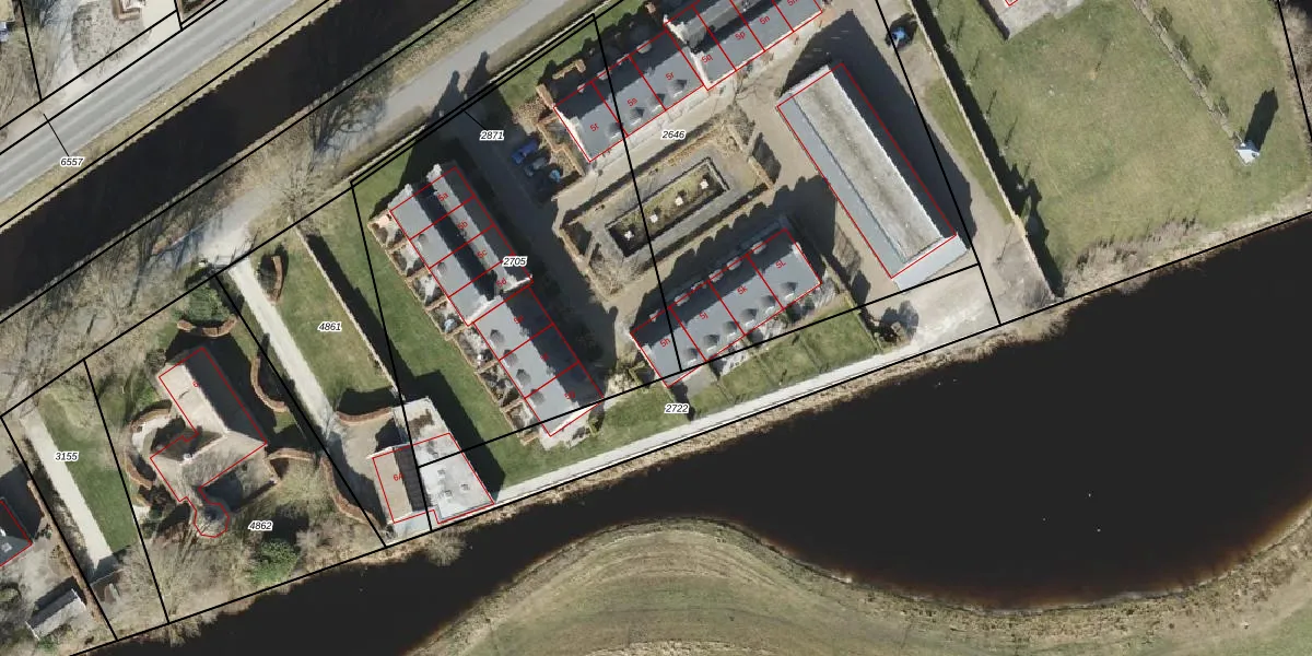 Het adres ligt op het perceel LEE01-E-2705, dat zich in de kadastrale gemeente Leek bevindt. Het perceel is 2140 m² groot. Dat is kleiner dan de gemiddelde perceeloppervlakte in Leek, dat op 5182,54 m² ligt. Het grootste perceel in de kadastrale gemeente is 72,3 ha. Het kleinste perceel heeft een oppervlakte van 0 m². Op het perceel zijn 9 adressen aanwezig. De huidige grenzen van het perceel zijn digitaal in de Basisregistratie Kadaster (BRK) geregistreerd op 14-11-1997.