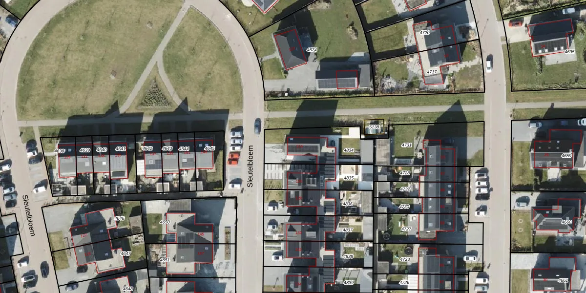 Het perceel waarop Sleutelbloem 124 staat heeft een oppervlakte van 448 m². Dit is een groot perceel. De perceeloppervlakte wordt geregistreerd door het Kadaster. Gedetailleerde informatie over de maten van dit perceel kunt u vinden in het rapport Kadastrale kaart met maatvoering van Sleutelbloem 124.