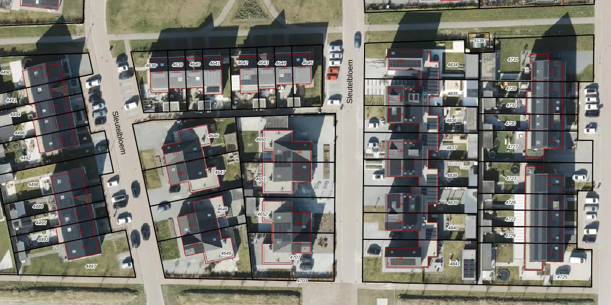 Het perceel waarop Sleutelbloem 145 staat heeft een oppervlakte van 491 m². Dit is een groot perceel. De perceeloppervlakte wordt geregistreerd door het Kadaster. Gedetailleerde informatie over de maten van dit perceel kunt u vinden in het rapport Kadastrale kaart met maatvoering van Sleutelbloem 145.