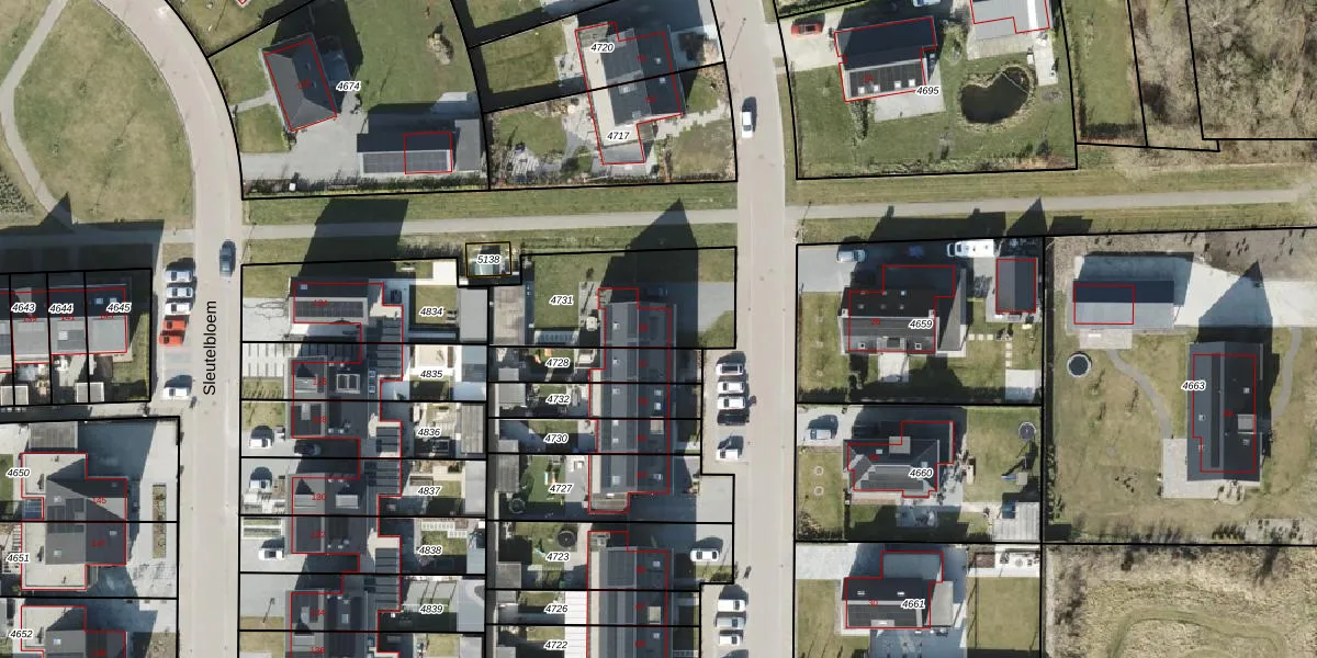 Het perceel waarop Sleutelbloem 55 staat heeft een oppervlakte van 525 m². Dit is een groot perceel. De perceeloppervlakte wordt geregistreerd door het Kadaster. Gedetailleerde informatie over de maten van dit perceel kunt u vinden in het rapport Kadastrale kaart met maatvoering van Sleutelbloem 55.